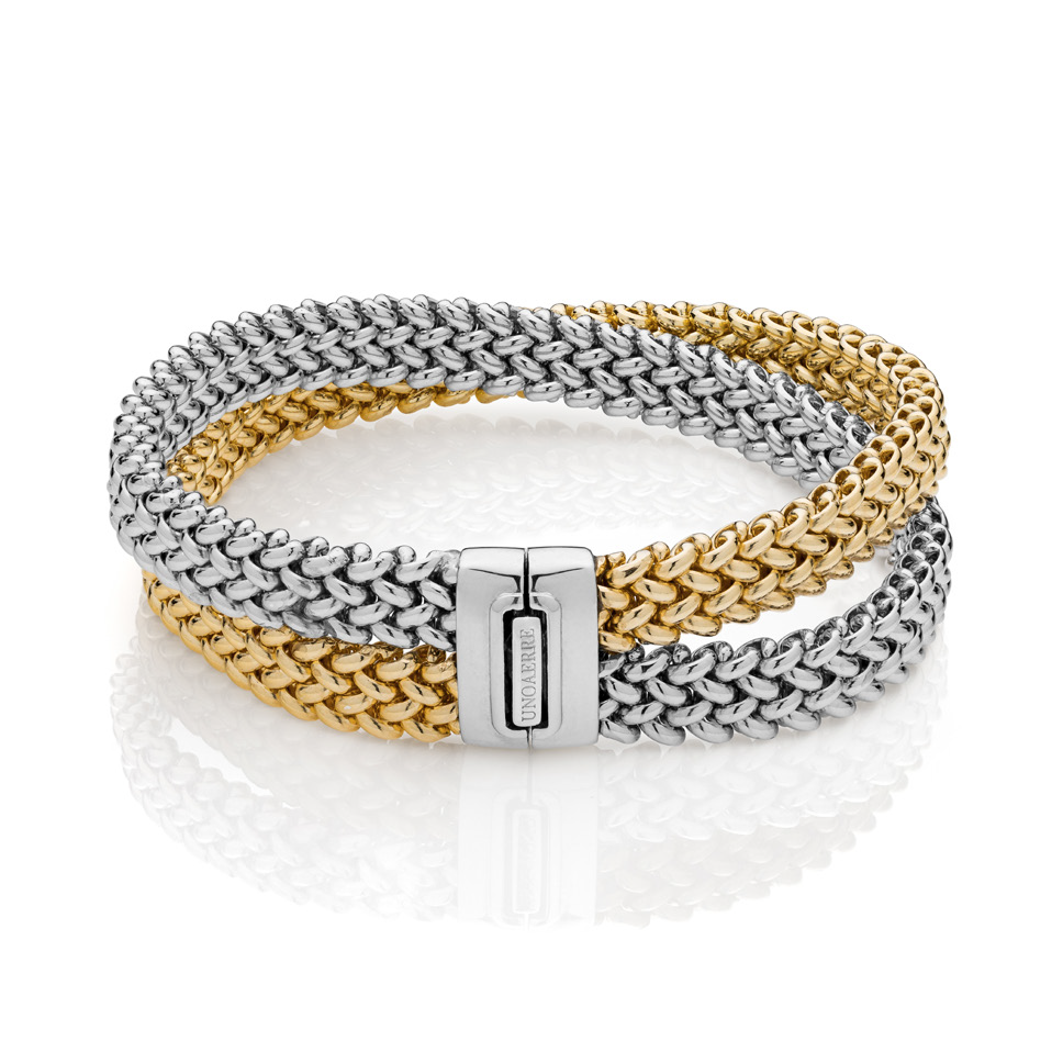 這款 Chicco 純銀手鐲以雙圈交叉設計搭配精緻的盒式扣環,展現出獨特的優雅時尚風格。UNOAERRE Chicco 系列將純銀與前衛設計完美結合,為珠寶注入獨一無二的精緻魅力。這款手鐲憑藉細膩的交叉線條為您的造型增添層次感與亮點,輕鬆提升整體風格。無論是日常穿搭還是特別場合,這款手鐲都能讓您的造型更出色。